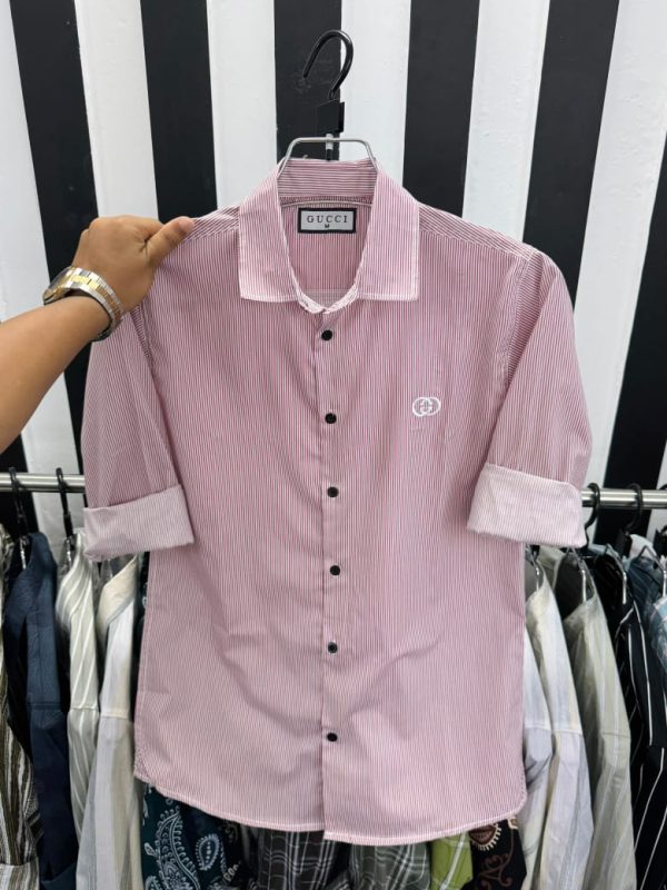 Elevate your business and smart-casual attire with the Gucci Crimson Pinstripe Shirt. This sophisticated piece features crisp red pinstripes on a clean white base, creating a timeless and visually slimming effect. The classic color combination makes it perfect for office environments, formal events, or a sharp evening look. Crafted for comfort, this shirt offers a tailored, modern fit and signature brand detailing. This is your essential shirt for looking polished and professional.