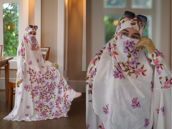 Capture pure serenity with the White Lilac Meadow Jilbab Set. This set features a clean White base decorated with charming Purple, Pink, and Brown floral clusters, offering a fresh and gentle aesthetic. Experience unmatched comfort from the Lightweight Century Fabrics. The fabric promises both a soft feel and Guaranteed Vibrancy in its colors. Effortlessly complete your look with the integrated 30-inch niqab, ensuring discreet and excellent face coverage. A beautiful addition to your modest collection.